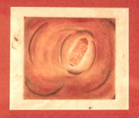 Iridescent pastels, acrylic, cloth, handmade paper. |
